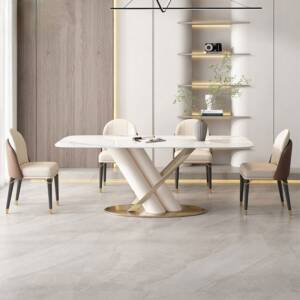 - تتميز سفرة طعام من متجر مكانك بتصميمها الذي يجمع بين الحداثة والأناقة حيث يبرز سطحها الرخامي اللامع الذي يضفي لمسة فاخرة لأي مساحة طعام.