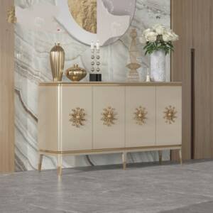 - كما أن البوفيه يحتوي على تفاصيل زخرفية جميلة مثل النقوش الذهبية التي تجعله جذاب وتبرز كلاسيكيته.