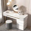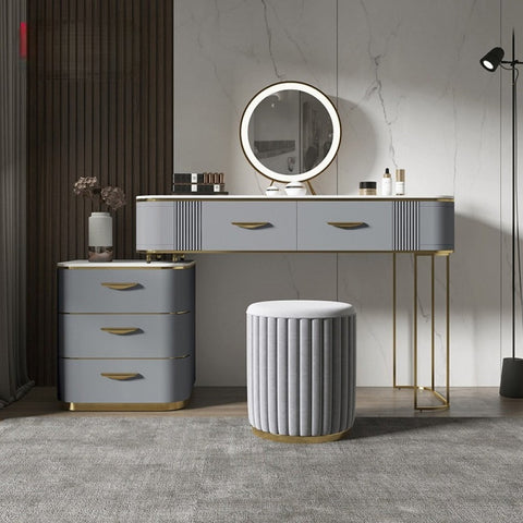 من أبرز مميزات هذه التسريحة هو وجود أدراج تخزين توفر لك مساحة كافية لتنظيم مستلزماتك الشخصية بطريقة منظمة وأنيقة. ستلاحظ الفارق في التنظيم والوظيفية مع هذا التصميم الذكي.