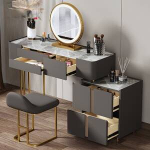 - تسريحة مودرن مزودة بأدراج عميقة تساعد في في تخزين مستحضرات التجميل وتصفيف الشعر بشكل منظم يسهل الوصول إليه.