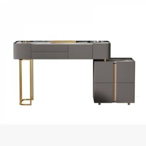 - لون تسريحة مودرن رمادي أنيق مع أرجل ذهبية تضفي لمسة لامعة تناسب جميع الديكورات.