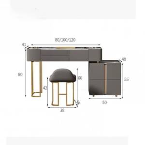 إذا كنت تبحث عن تسريحة أنيقة وعملية في الوقت ذاته فمتجر مكانك يقدم لك تسريحة مودرن رخام مصنوعة من أجود الأخشاب بلون رمادي مميز وسطح رخامي متين ويضفي عليها لمسة عصرية مميزة مع أرجل معدنية متينة بلون ذهبي لامع لا يتغير مع الوقت، يأتي معها كرسي منجد بالجلد من مكانك.