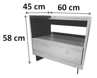- الطاولة الجانبية: الارتفاع 58 سم، العمق 45 سم، العرض 60 سم.