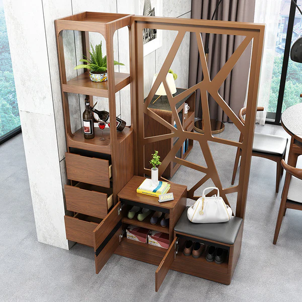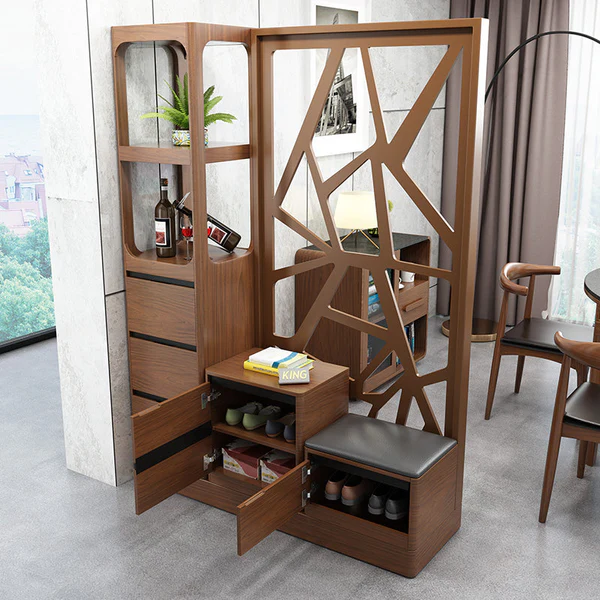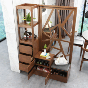 تتميز خزانة الأحذية بزخرفة شيك وبمقعد جلوس مع عددة أرفف وادراج بتصميم رائع . وتتميز بلمسة نهائية محايدة تنسق مع أي ديكور تقريبًا ، كما أن الوحدة مصنوعة من الخشب الزان والقاعدة الصلبة الخشبية لتكمل البنية القوية إلى جانب تصميم ممتع.