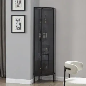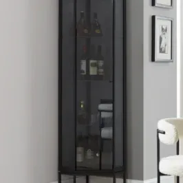 يتميز الكوفي كورنر بهيكل مصنوع من الخشب الهندسي المتين مع زجاج غامق لامع يمنح القطع المعروضة وضوح وأناقة، بالإضافة إلى أرجل معدنية قوية تضيف ثباتًا واستقرارًا مع مظهر عصري جذاب. حجمه مثالي ليناسب المساحات الصغيرة والكبيرة دون أن يشغل حيزًا كبيرًا.
