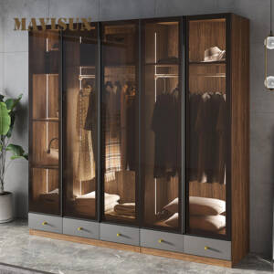 - بالإضافة إلى أن هذه الخزانة تتميز بأبواب زجاجية شفافة تتيح رؤية محتويات الخزانة بسهولة وتضفي شعور بالاتساع على الغرفة.