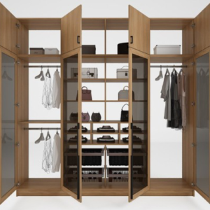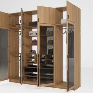 - تعد خزانه ملابس مفتوحة بأنها مزيج بين الخشب الطبيعي والزجاج ما يمنحها مظهر ممتاز يناسب مختلف أنماط الديكور.