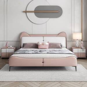 - سرير أطفال كبار وردي مودرن يجمع بين الأناقة والعملية.