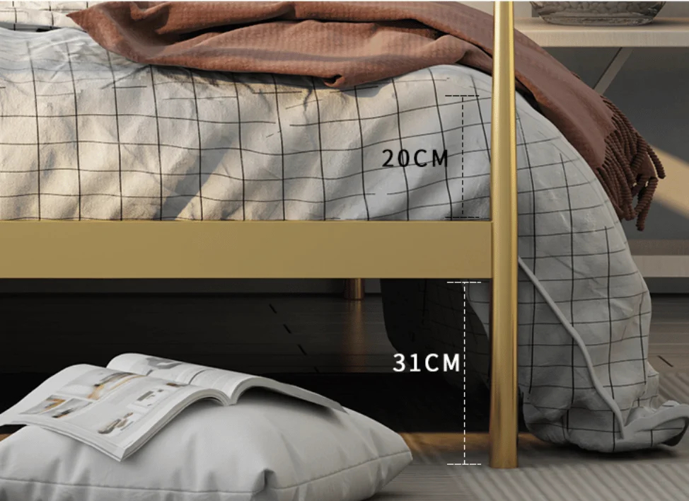 السرير مصنوع بهيكل معدني متين يمنح ثباتًا عاليًا وقدرة على تحمل الاستخدام المتكرر. هذا النوع من الهياكل يُفضل في غرف نوم جاهزة لأنه يحافظ على شكله واستقراره لفترات طويلة، مع سهولة في العناية والتنظيف اليومي دون الحاجة إلى مجهود إضافي.