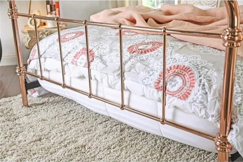 يعتمد السرير على خامة معدنية صلبة مقاومة للتلف والتآكل، ما يساعد على الحفاظ على شكله وجودته لفترة طويلة. ومع الثبات الجيد، ستشعر براحة أكبر أثناء النوم وتقليل الاهتزازات، خصوصًا في غرف النوم التي تُستخدم بشكل يومي.