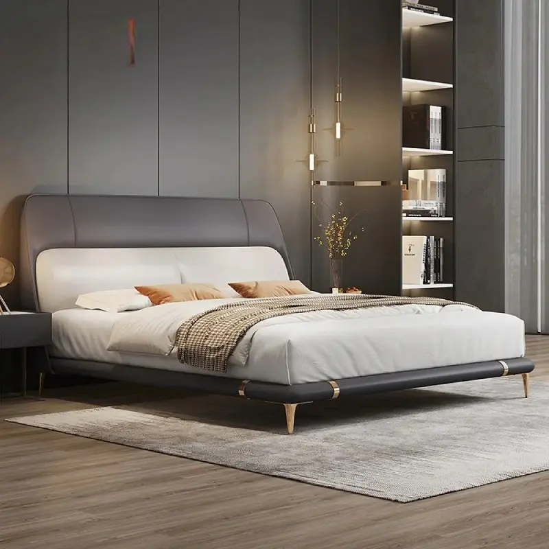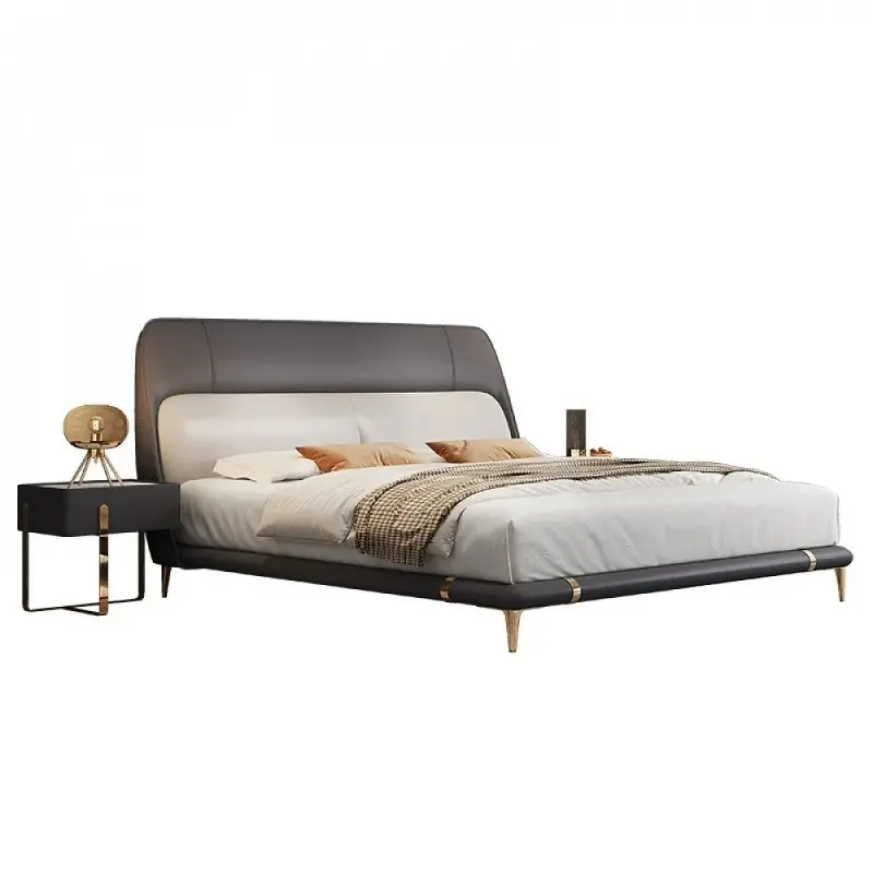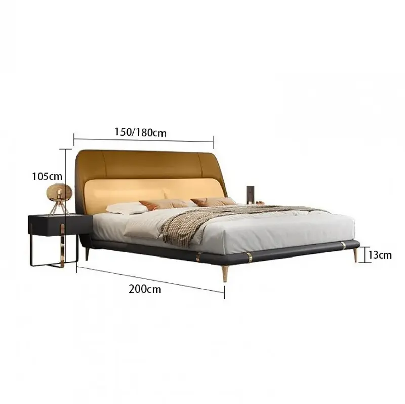 يأتي السرير بتفاصيل عصرية واضحة وظهر مرتفع يمنح الغرفة مظهرًا مرتبًا وفخمًا. التنجيد بجلد ناعم مع حشوة إسفنج عالية الكثافة والمرونة يضيف راحة ملموسة عند الاتكاء، كما يمنح الظهر شكلًا ممتلئًا يبرز جمال التصميم.