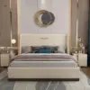 - ظهر السرير المرتفع منجد بأجود الجلود ومبطن باسفنج عالي الكثافة والمرونة ليدعم ظهرك ويساعدك على الاسترخاء عند القراءة قبل النوم.
