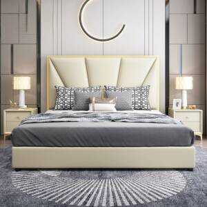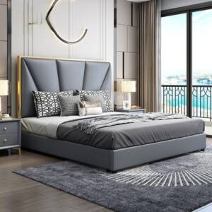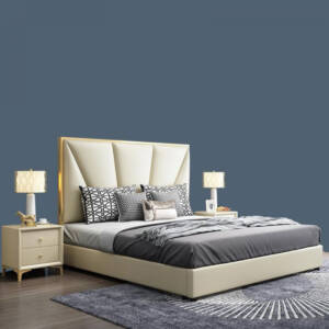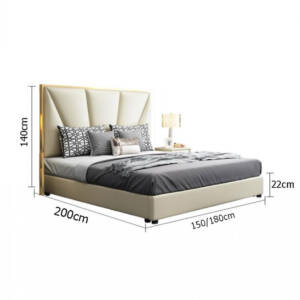 - خامة السرير: هيكل خشبي صلب مع إطار من الخشب عالي الجودة والمتين ومغطى بطبقة من الجلد عالي الجودة الناعم المريح ومبطن بالاسفنج عالي الكثافة والمرونة.