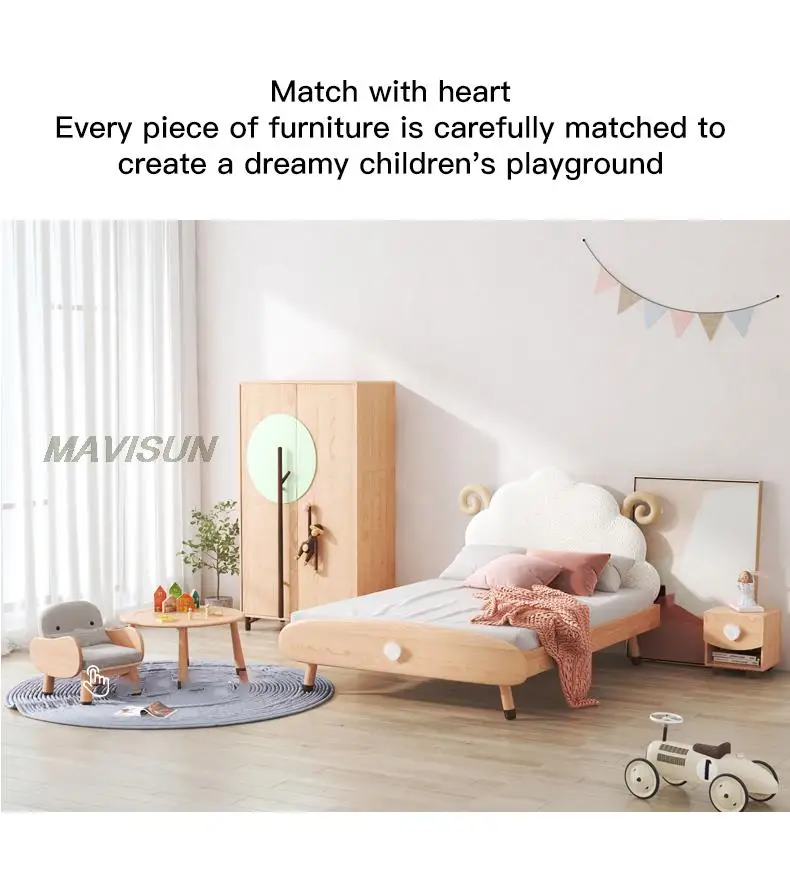 اضف لمسة من الجمال والفرح إلى غرفة نوم صغيرك مع سرير النوم المستوحى من الخيراف السحابي. تمتع بتصميم فريد يضفي جوًا من الأحلام والإثارة إلى البيئة الراحة. يأتي هذا السرير بلون جميل، كما هو واضح في الصورة، مما يمنح الغرفة مظهرًا أنيقًا وحديثًا.
