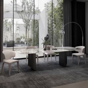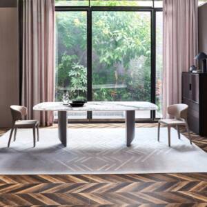 - طاولة تتميز بتصميم عصري مميز وغير تقليدي تجعل المكان أكثر فخامة.