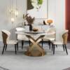 - اسم المنتج: طاولة طعام رخامية بقاعدة فريدة.