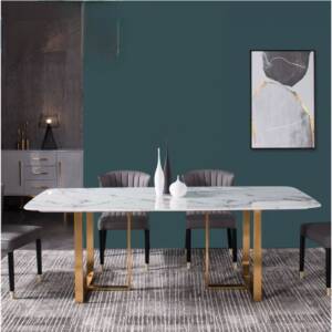- اسم المنتج: طاولة طعام بسطح رخامي فريد.