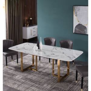 - تتميز أيضًا الطاولة بخاماتها عالية الجودة والمنتقاة بعناية فائقة بمزيج من الستانلس ستيل المتين المقاوم للصدأ والتآكل يمنح الطاولة الاستقرار والتوازن مع سطح رخامي متين يضمن لك عمر افتراضي طويل.