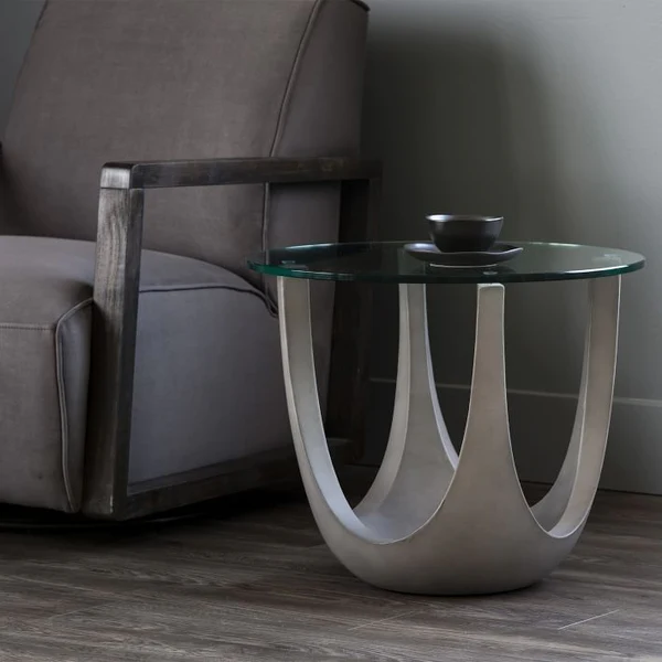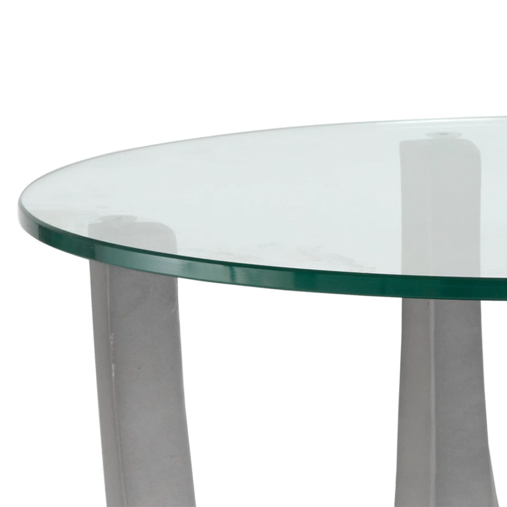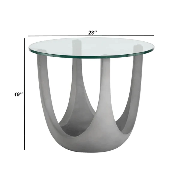 تتميز الطاولة الجانبية بسطح مفتوح مع تصميم مودرن فاخر . وتتميز بلمسة نهائية محايدة تنسق مع أي ديكور تقريبًا ، كما أنها مصنوعة من المعدن والزجاج والقاعدة الصلبة المعدنية لتكمل البنية القوية إلى جانب تصميم ممتع.