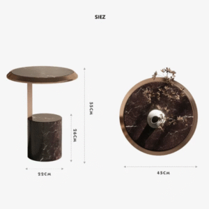 تتميز الطاولة الجانبية بسطح مفتوح مع تصميم عتيق ومميز . وتتميز بلمسة نهائية محايدة تنسق مع أي ديكور تقريبًا ، كما أنها مصنوعة من الرخام والمعدن والقاعدة الصلبة المعدنية لتكمل البنية القوية إلى جانب تصميم ممتع.