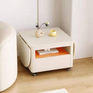 طاولة جانبية بتصميم مودرن أنيق وعصري. تتميز بلون أبيض جذاب يضفي لمسة من الأناقة والانتعاش على المساحة. يجعلها مناسبة للمساحات الصغيرة أو الأماكن ذات التصميم المحدود. تصنع الطاولة من خشب عالي الجودة، والذي يمنحها القوة والاستدامة. تتميز بتصميمها البسيط والعصري، مع خطوط نظيفة وأنيقة، مما يجعلها تتناسب مع أي نمط ديكور داخلي. هذه الطاولة القهوة ستضفي لمسة عصرية وجمالية على أي مساحة جلوس ترغب في تحسينها.
