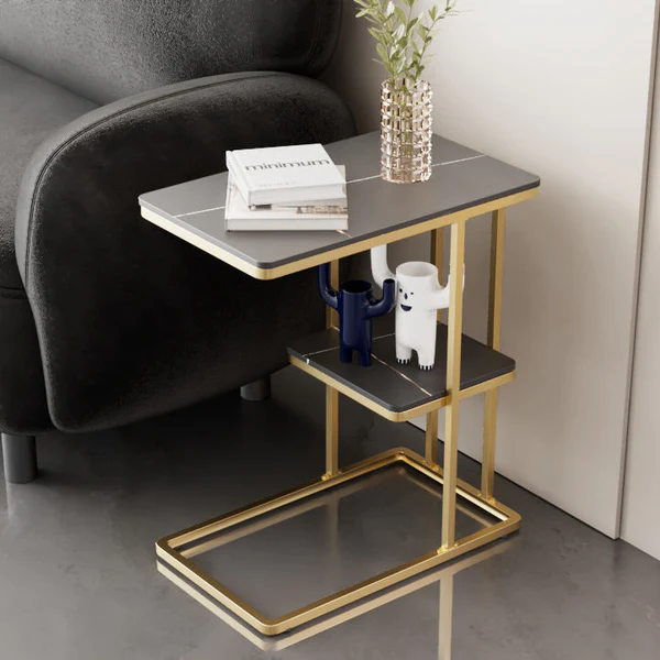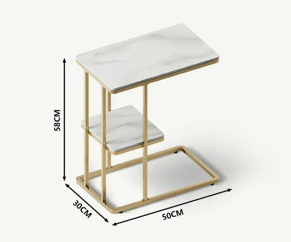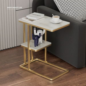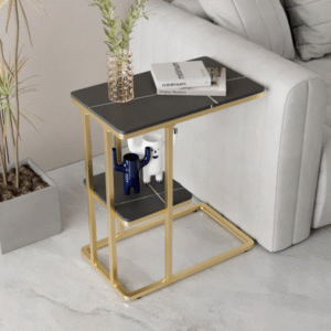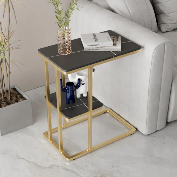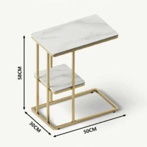 تتميز الطاولة الجانبية بسطح مفتوح مع رف تخزين عملية بتصميم شيك . وتتميز بلمسة نهائية محايدة تنسق مع أي ديكور تقريبًا ، كما أنها مصنوعة من الرخام والقاعدة الذهبية الصلبة القوية إلى جانب تصميمها ممتع.