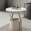 تتميز الطاولة الجانبية بسطح مفتوح مع تصميم مبتكر وانيق. وتتميز بلمسة نهائية محايدة تنسق مع أي ديكور تقريبًا ، كما أنها مصنوعة من المعدن والرخام والأرجل الصلبة التكمل البنية القوية إلى جانب تصميم ممتع.