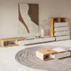 يتميز طقم الطاولات بسطح وعددة ادراج مع تصميم عصري وحديث . وتتميز بلمسة نهائية محايدة تنسق مع أي ديكور تقريبًا ، كما أنها مصنوعة من خشب الزان والاستانلس ستيل والقاعدة الصلبة الخشبية لتكمل البنية القوية إلى جانب تصميم ممتع.