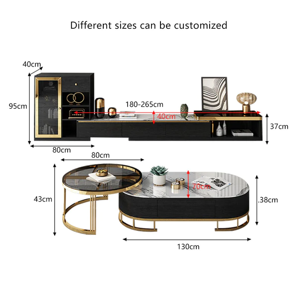 طاولة تلفاز : العرض 265 سم* العمق 40 سم* الإرتفاع 37 سم