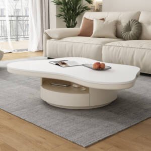 تتميز الطاولة بتصميم حديث يعمل بشكل جيد . تتميز بلمسة نهائية محايدة تنسق مع أي ديكور تقريبًا ، كما أن سطح الطاولة مصنوعة من الخشب متين عالي الجودة يمنحها بنية متينة إلى جانب تصميم ممتع.
