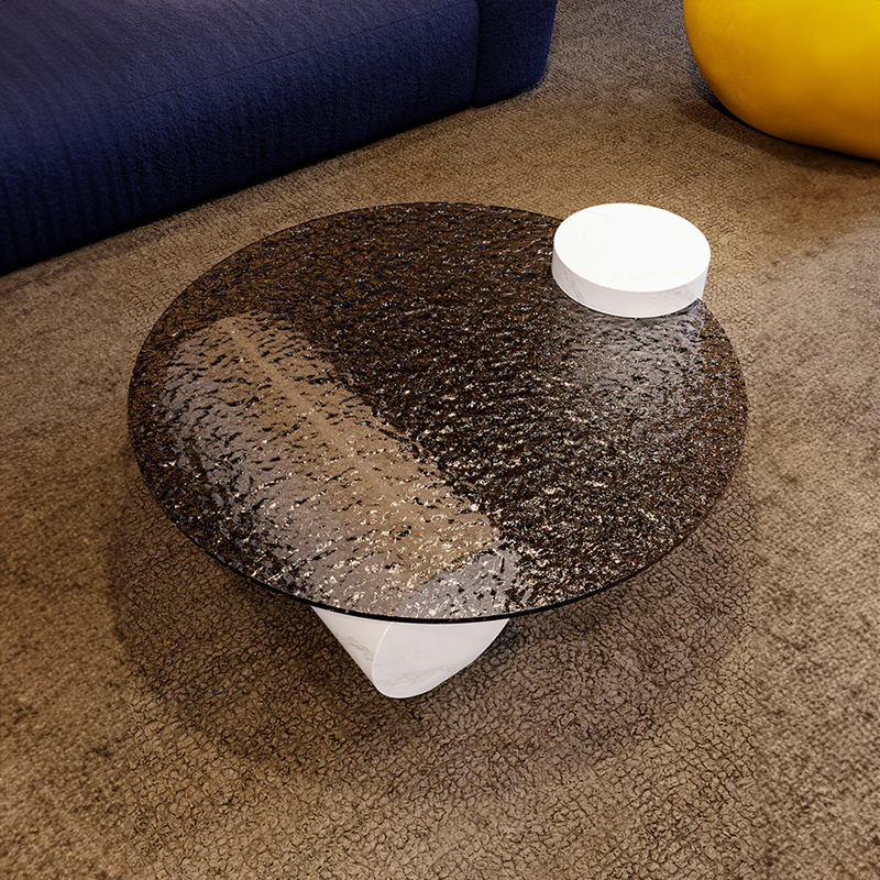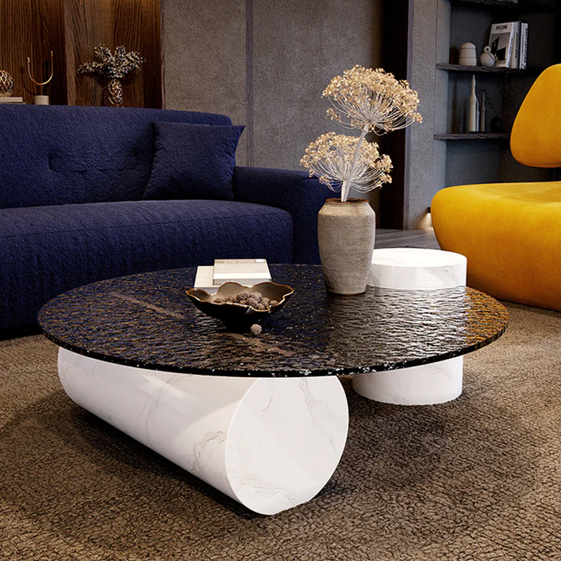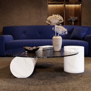 طاولة قهوة رخامية بسطح زجاجي تتميز بأناقتها وتصميمها الفريد, إنها خيار رائع لتجميل أي مساحة معيشة أو غرفة استقبال بأسلوب فاخر وعصري.