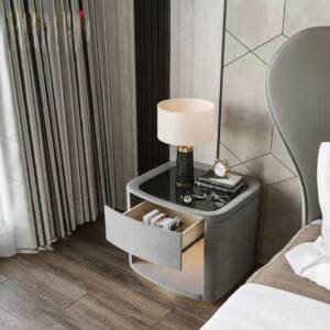 طاولة سرير جانبية من متجر مكانك هي الخيار المثالي لإضفاء لمسة من الفخامة والعملية على غرفة نومك بتصميم عصري يجمع بين المتانة والجمال في آن واحد بلون رمادي هادئ ينسجم مع مختلف أنواع الديكورات، وتأتي أيضًا بسطح علوي أنيق يوفر لك مساحة إضافية بالإضافة إلى درج واسع يسمح لك بتخزين الكتب أو مقتنياتك الشخصية ما يحافظ على ترتيب المكان وتنظيمه والحفاظ على مقتنياتك.