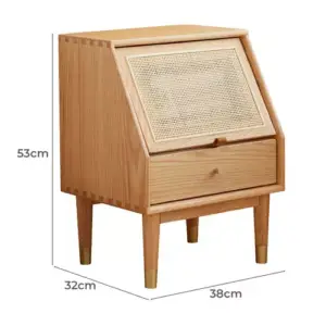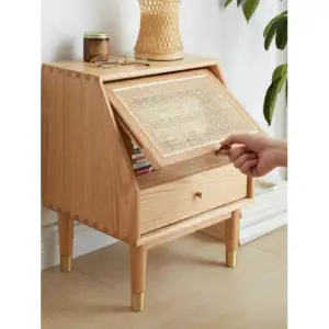 طاولة سرير مودرن خشب بتصميم فريد يجمع بين الطابع الكلاسيكي واللمسات العصرية من متجرنا لإضافة مثالية لأي غرفة نوم مصنوعة من الخشب الفاخر بلون طبيعي دافئ يضفي إحساس بالراحة والدفء إلى غرفتك وتأتي الخزانة بباب علوي مائل مصمم بأسلوب ريفي المنسوج يضفي لمسة طبيعية وأنيقة للديكور كما يسمح بتهوية المحتويات الداخلية بشكل مثالي بالإضافة إلى ذلك فالطاولة تحتوي على درج سفلي واسع مما يوفر لك مساحة تخزين عملية.