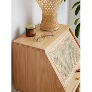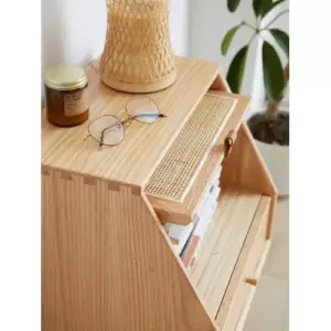 - تأتي الطاولة أيضًا بباب علوي مائل مميز مصنوع بأسلوب الخيزران المنسوج ما يجعل الطاولة ذات مظهر طبيعي وأنيق يناسب كل الأماكن حتى الغرف التي تكون بطابع ريفي.