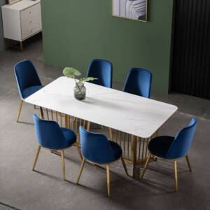 - يأتي مع الطاولة مجموعة من الكراسي المتطابقة والتي تتناسق جيدًا مع تصميم الطاولة وتكمل فخامته.