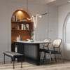 - طاولة طعام بدون كراسي تتميز بتصميم بسيط لكن جذاب يعد إضافة مثالية إلى أي غرفة طعام.