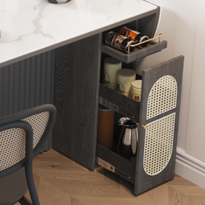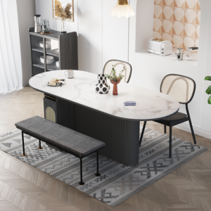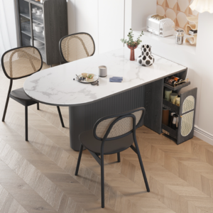 طاولة طعام تنطوي قابلة للطي Lesei من متجر مكانك هي القطعة التي تحتاجها في غرفة طعامك لتمنحها طابع فاخر ومميز كما أنها عملية يمكن فردها عند الحاجة وتحتوي على أدراج لتخزين أغراض الطاولة المهمة التي تريدها دائمًا في متناول يدك مع سطح صخري من السليت آمن وصحي، مقاوم لدرجات الحرارة العالية.