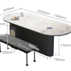 - مقاسات الطاولة: العرض:200 سم ، العمق: 80 سم، الارتفاع: 77 سم.
