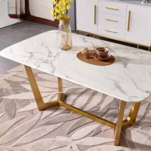 - تم تصميم قاعدة الطاولة من معدن مطلي باللون الذهبي اللامع ليعزز من متانته واستقرار الطاولة ما يعكس الطلاء الذهبي الفخم ذوق راقي ويضيف لمسة عصرية أنيقة للغرفة.