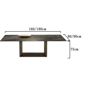 طاولة طعام ٨ كراسي رخام المقدمة لك من متجر مكانك بتصميم عصري لسطح على شكل مستطيل وقاعدة من الستيل المتوفر بلونين أنيقين الأسود والبرونزي لتتماشى الطاولة مع باقي الأثاث بسهولة، طاولة توفر لك مساحة مثالية للتجمعات العائلية والعزومات حيث انها متوفرة بمقاسات مختلفة لتختار ما يناسب مساحة الغرفة وعدد الأفراد كما أن الكراسي مريحة للغاية وتكمل أناقة الطاولة.
