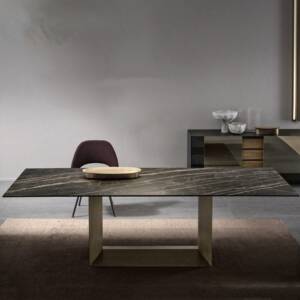 - قاعدة الطاولة مصنوعة من الستيل ومتوفرة بلونين الاسود والبرونزي مما يجعلها تتناغم بسهولة مع أي لون ديكور وأثاث في الغرفة.