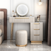 - تتميز طاولة المكياج أنها تأتي بمرآة ذات إضاءة قابلة للتعديل لتناسب احتياجاتك مما يسهل مرحلة وضع مستحضرات التجميل كما أنها تحتوي على أدراج عملية لتنظيم أدوات التجميل والعناية الشخصية.