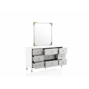 - علاوة على ذلك يتضمن الطقم شيفونيرة أدراج توفر لك مساحة لتخزين أغراضك بشكل مخفي ومنظم يسهل الوصول إليه وتمنع الفوضى من الغرفة.