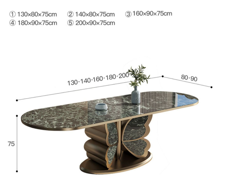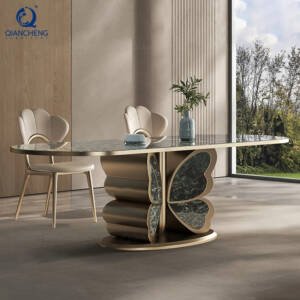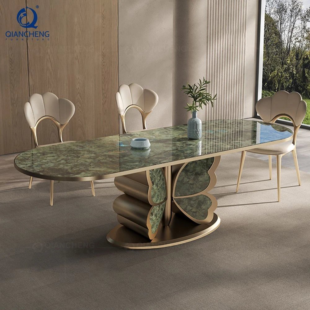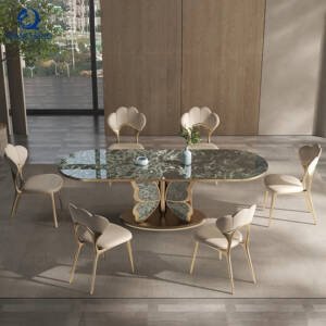 مصنع من ستيل قوي عالي الجودة مقاوم للصدأ مع شكل فراشة يعطي لمسة مميزة الي غرفة الطعام مع 6 كراسي غير القابل للصدأ بشكل بسيط رائع