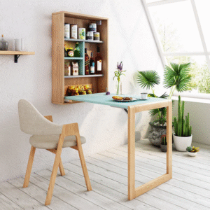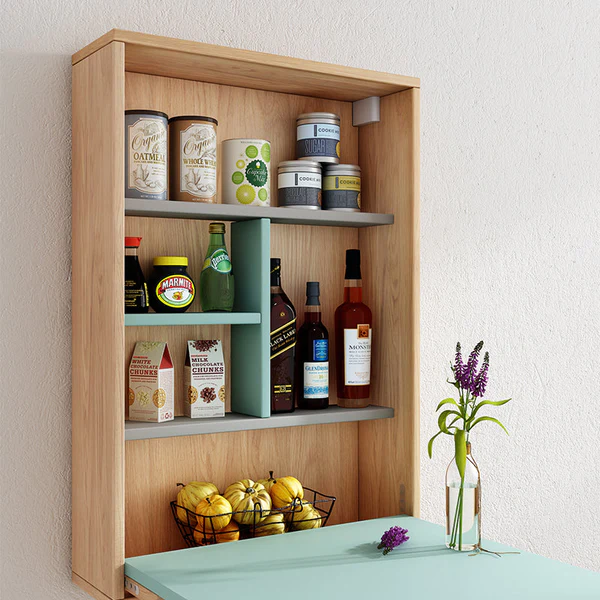 تتميز الكوفي كورنر بخاصية الطي مع أرفف بتصميم شيك . وتتميز بلمسة نهائية محايدة تنسق مع أي ديكور تقريبًا ، كما أنها مصنوعة من خشب الكونتر والأرجل الصلبة الخشبية لتكمل البنية القوية إلى جانب تصميم ممتع.