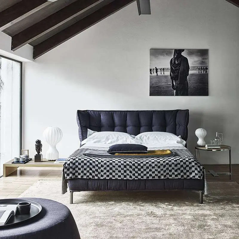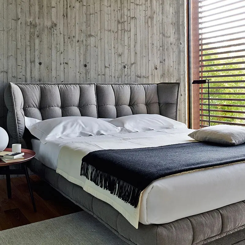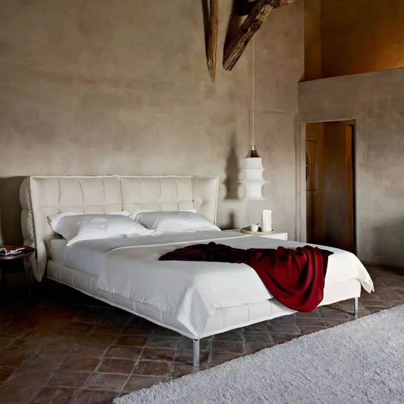 الجلد معروف بملمسه اللطيف، ومع الاستخدام المعتاد يكفي الاهتمام بالتنظيف الخفيف بشكل دوري للحفاظ على المظهر الأنيق. كما أن التصميم المبطن يمنح الغرفة إحساسًا أكثر دفئًا ويُظهر السرير كقطعة أساسية في الديكور بدل أن يكون مجرد إطار للنوم.