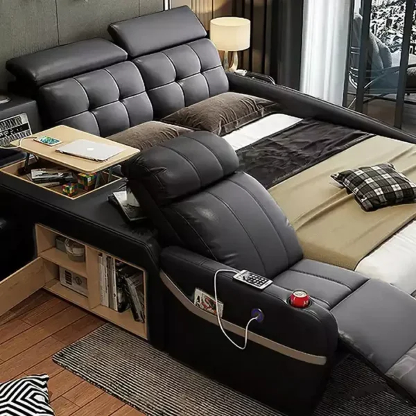 في كثير من بيوت تكون الحاجة كبيرة لقطعة تجمع أكثر من وظيفة بدون زحمة أثاث. هذا السرير يعطيك حلًا ذكيًا: مساحة نوم مريحة مع مساحات تخزين تساعدك ترتب الأغراض القريبة مثل البطانيات أو الاحتياجات اليومية، فتخف الفوضى وتبقى الغرفة مرتبة بشكل دائم.