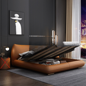 مصنع من اطار خشب هندسي متين عالي الجودة مع محشو من اسفنج عالي الجودة مغطى من جلد عالي الجودة مع ظهر جلدي عالي الجودة مع قاعدة معدنية متحركة