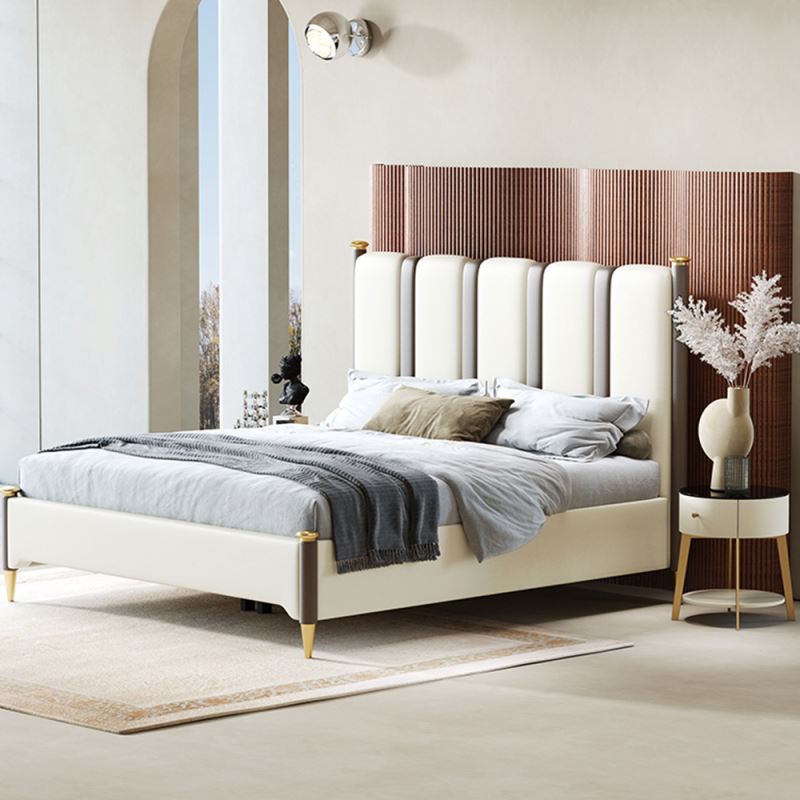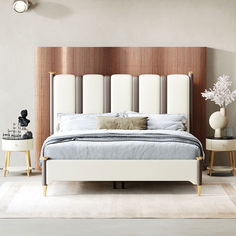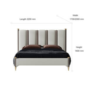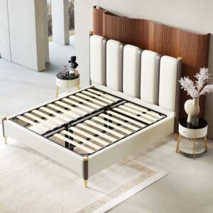 مصنع من خشب هندسي متين عالي الجودة مع ارحل ذهبية عالي الجودة مع اطار محشو من اسنفج عالي الكثافة ومغطى من جلد عالي الجودة
