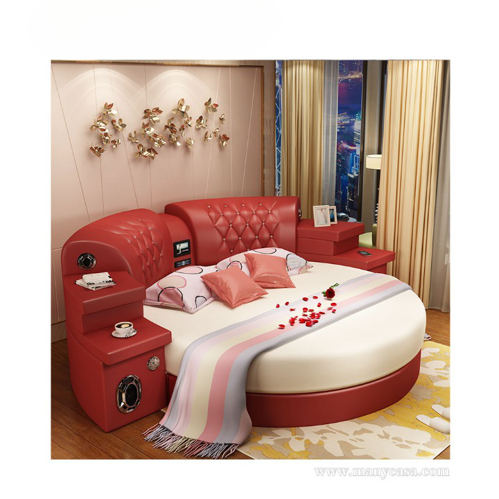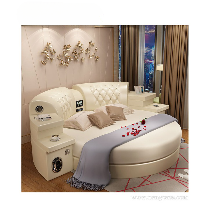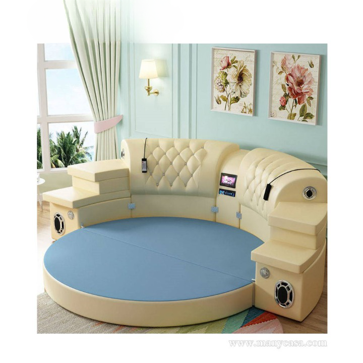 يتميز بوجود جهاز للتدليك ، USB ، بلوتوث ، ضوء LED ، خزانة ، مسند رأس لين